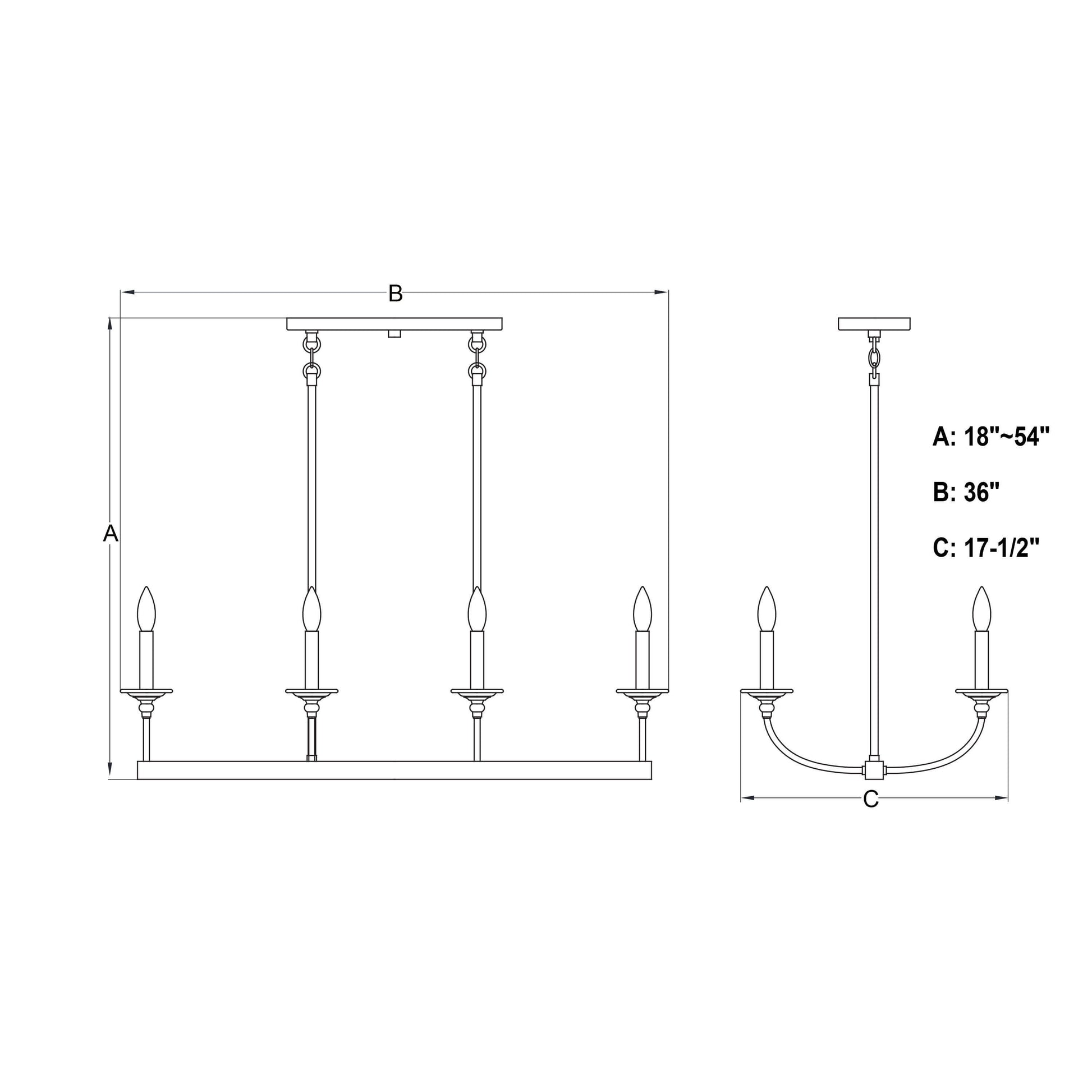 Transform your dining or living space with the Durham 8-light linear chandelier. Its modern matte black finish and open design, featuring exposed bulbs, create a warm and inviting atmosphere. Gracefully arched arms offer a classic silhouette, blending traditional charm with contemporary style. This linear light fixture is perfect for illuminating long dining tables, kitchen islands, or large living areas, providing ample light distribution. The Durham linear chandelier brings refined simplicity and lasting style to your home.