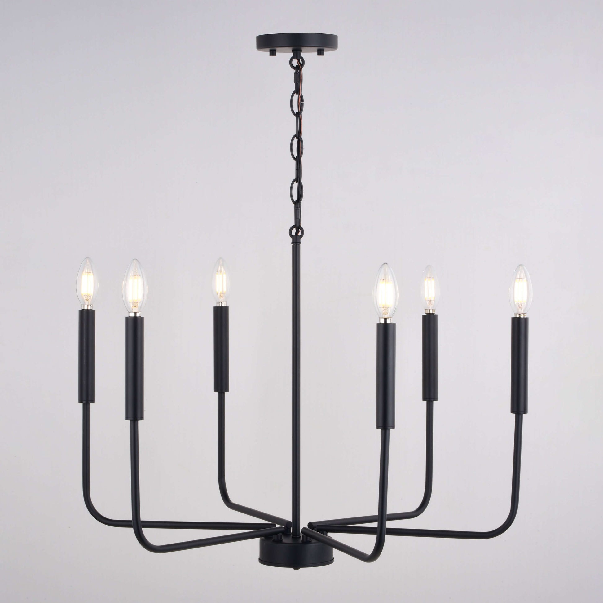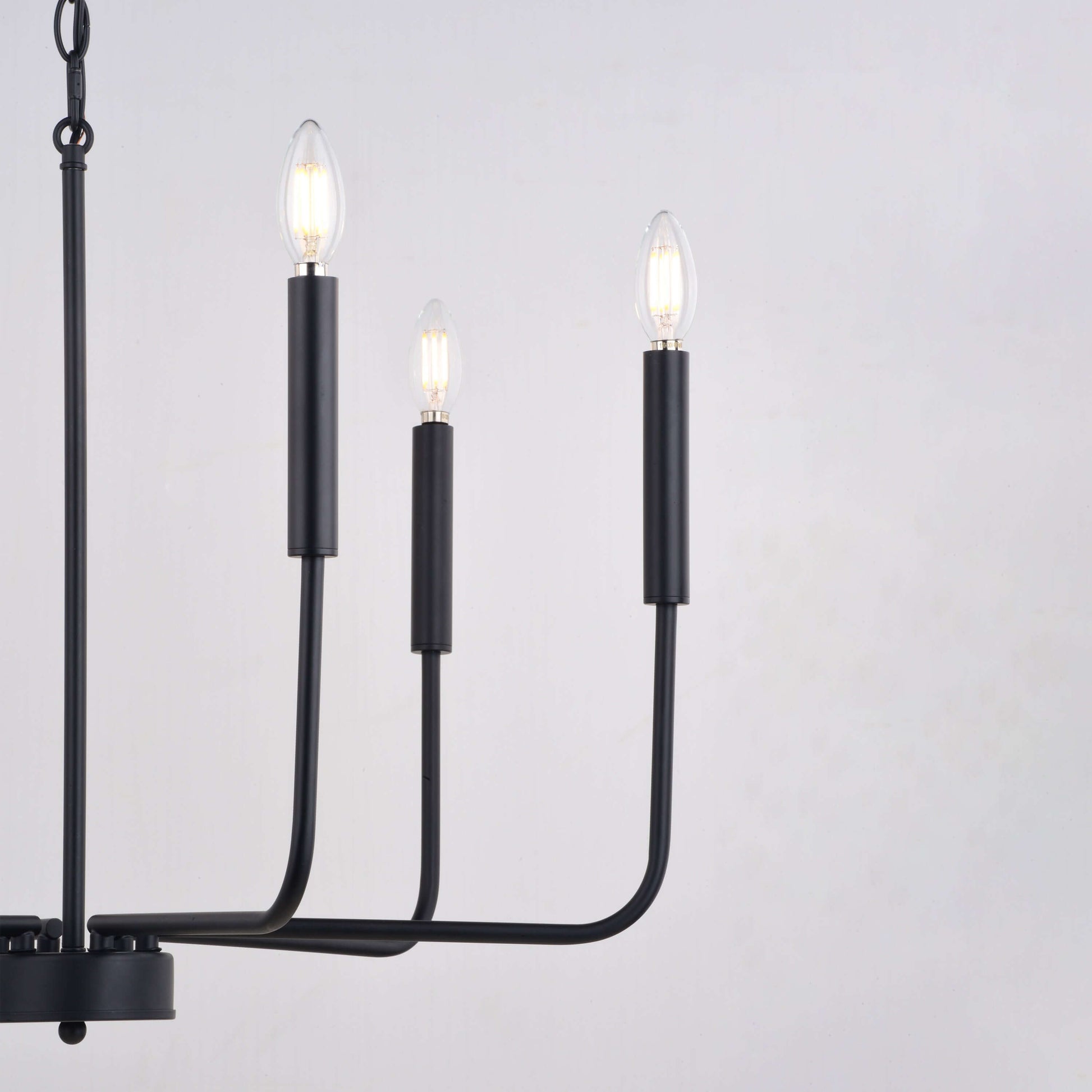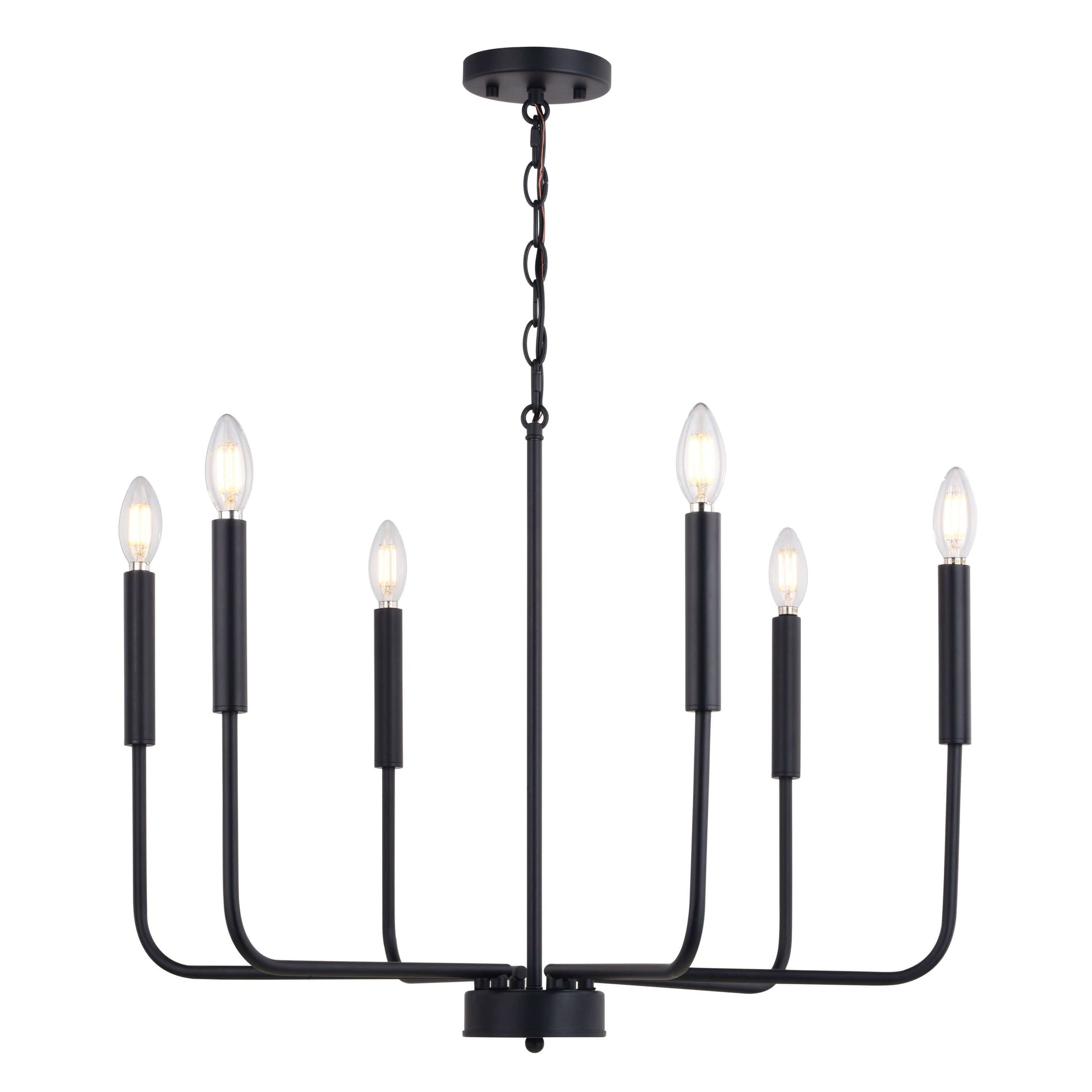 The Belden 26-in. chandelier speaks loudly, yet humbly, to the on-trend homeowner. The sleek black arms reach upwards, casting a captivating glow for any occasion. Add this versatile candelabra chandelier for the perfect touch of style in your living area, or dining space.