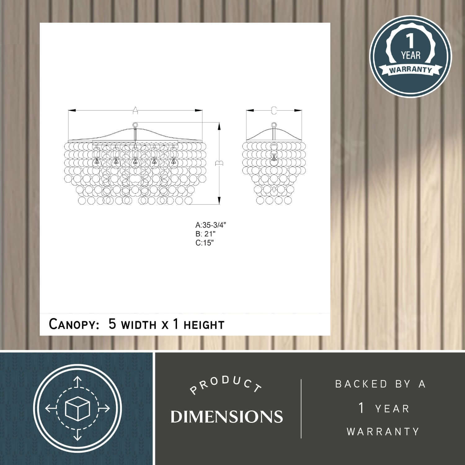 Soft contemporary styling combined with texture and iridescence. The Elsa collection 5 light oval island pendant light is a unique option to lighten and liven up the space above an elongated dining table or kitchen island. Tiers of hand-strung natural capiz shells create a soft diffused light that perfectly compliments the satin nickel metal elements. This is a full collection with coordinating pieces to decorate any room in the house.