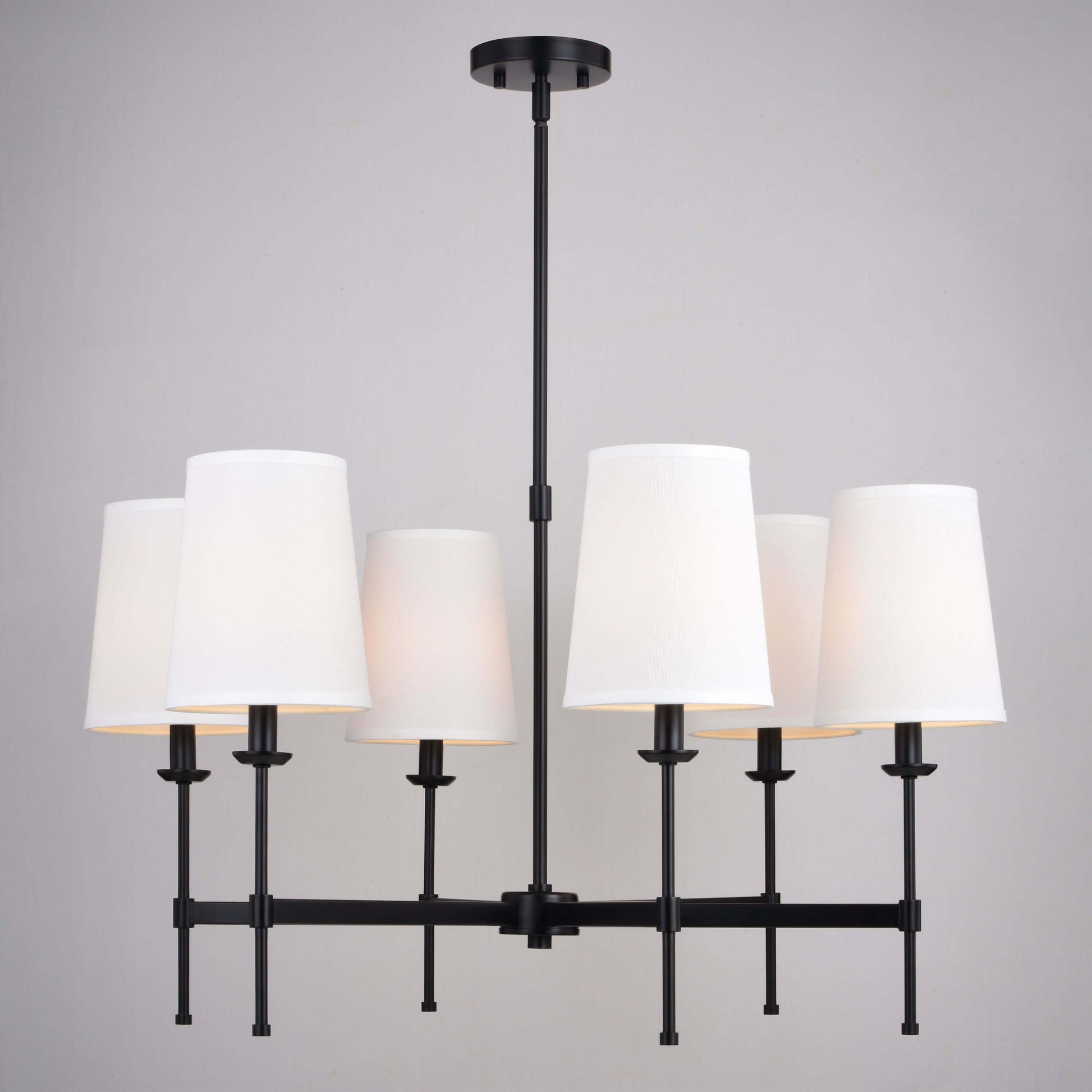 The Camden collection is a timeless take on a classic. The graceful look of the white linen fabric shades provides ambient illumination and is sure to upgrade your decor. This shaded chandelier is ideal for living or dining rooms.